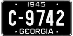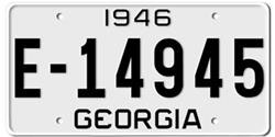 Georgia added the county name on bottom of its license plates in 1971 and this system is still in place. While the 1910, 1911, 1912, 1913 and 1914 Georgia license plates were made of thin steel and required some backing to enhance rigidity, the 1915 issued by Georgia was made of porcelain. The state reverted to steel in 1916. The most unique Georgia license plate size was issued in 1944 with dimensions: 3.5” x 12.5”. This enabled the state to manufacture two license plates from a single blank used in 1942 (1943 was a metal strip with 1943 expiration date). Georgia introduced retro-reflective white sheeting on aluminum in 1971 and this has continued to the present day. Reflective yellow paint on the embossed number plates were issued in Georgia in 1941. This is the only year where reflective paint was used on Georgia’s license plate numbers.