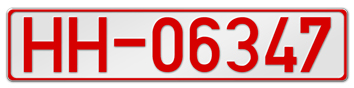 • Car dealer license plates are in red print on a reflective white background, and the code begins with 06. Red plates may be attached to cars which are changing hands, such as the test run of unregistered cars, and the liability insurance is connected to the plate, not a specific car.